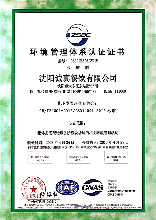 環境管理體系認證證書